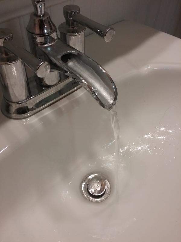 Shut off water supply. Low flow faucet aerator many bathroom faucets come with low flow aerators. For kitchen and lavatory faucets turn a bucket or similar large container upside down over faucet to deflect the water into the sink turn water supplies off again. Turn water supplies back on.